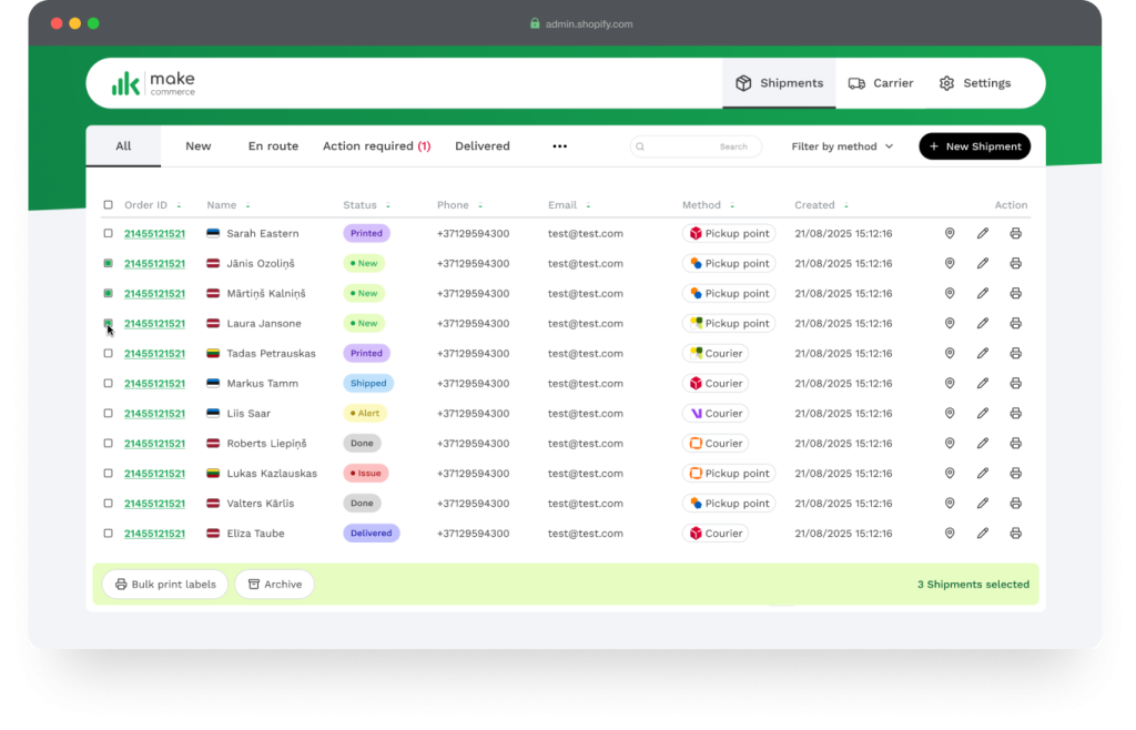 Pirms aptuveni mēneša ieviesām mūsu jauno Shopify maksājumu moduli. Tagad tādu pašu uzlabojumu piedāvājam arī piegādēm.